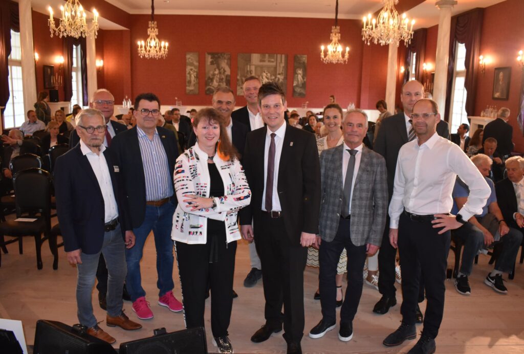Von links: Rainer Stuhldreyer (Vorsitzender des Kreissportbundes Höxter), Hans-Bernd Janzen (Vize-Landrat Kreis Paderborn), Martin Hornberger (Geschäftsführer SC Paderborn), Staatssekretärin Andrea Milz, Bad Driburgs Bürgermeister Burkhard Deppe, Michael Scholle (Vorsitzenden der Bezirksgruppe Hochstift Paderborn der DOG), MdL Matthias Goeken, Moderatorin Julia Ures, Diethelm Krause (Präsident Kreissportbund Paderborn), Uwe Damer (Geschäftsführer der Bezirksgruppe Hochstift Paderborn der DOG) und Jörg Adami (Co-Founder esports player foundation).